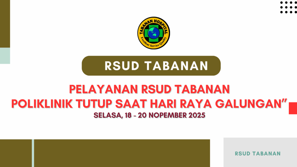 Puji syukur kami panjatkan kehadapan Tuhan Yang Maha Esa/Ida Sang Hyang Widi Wasa atas berkat dan rahmat-Nyalah kami bisa mewujudkan website Rumah Sakit Umum Daerah Kabupaten Tabanan. Website ini memuat seluruh informasi kegiatan pelayanan dan terbuka kepada seluruh lapisan masyarakat tentang keberadaan dan gambaran fasilitas yang dimiliki oleh Rumah Sakit Umum Daerah Tabanan.