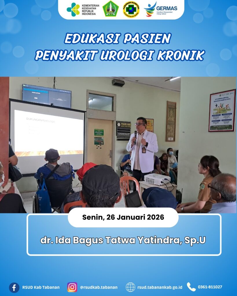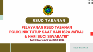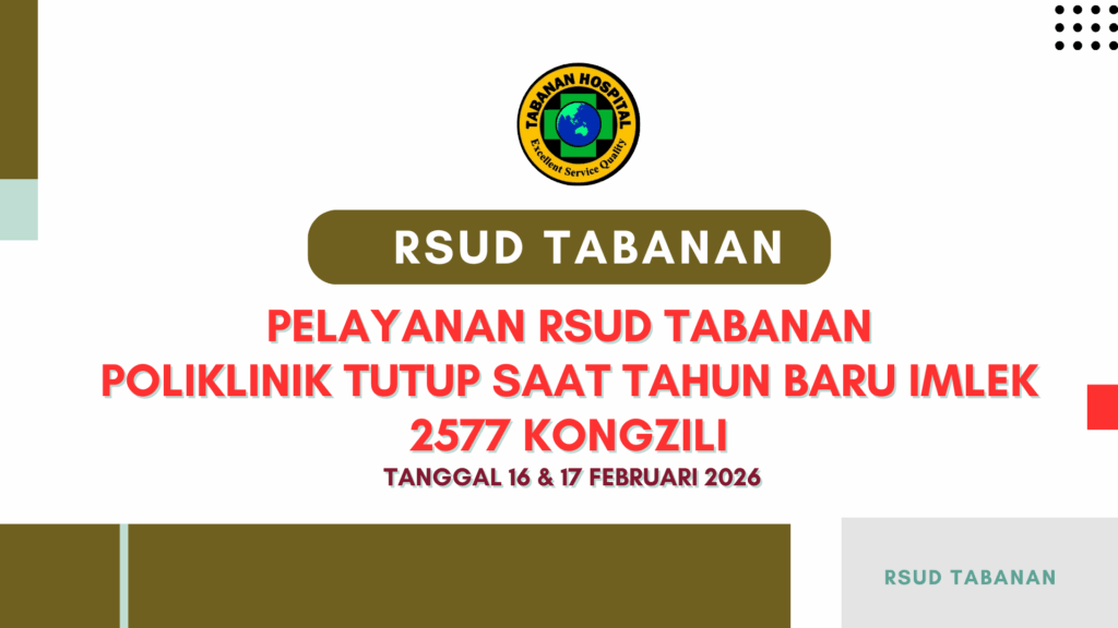 Semoga dengan adanya website ini dapat memberikan manfaat bagi masyarakat luas terutama masyarakat pengguna Rumah Sakit Umum Daerah Kabupaten Tabanan. Segenap Manajemen dan staf RSUD Kabupaten Tabanan kami mengucapkan terimakasih atas kepercayaan yang telah diberikan oleh Pemerintah Kabupaten Tabanan dan masyarakat Tabanan sehingga kedepan Rumah Sakit Umum Daerah Kabupaten Tabanan bisa lebih baik.