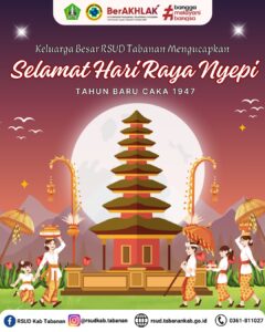 Keluarga Besar RSUD Tabanan mengucapkan Selamat Hari Raya Nyepi Tahun Baru Caka 1947 bagi umat sedharma. “Dalam keheningan Nyepi, mari...