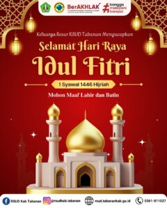 Keluarga Besar RSUD Tabanan mengucapkan Selamat Hari Raya Idul Fitri 1 Syawal 1446 H. “Di hari yang suci ini, mari...