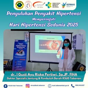 Sabtu, 17 Mei 2025 PKRS RSUD Tabanan dengan SMF Jantung dan Pembuluh Darah RSUD Tabanan melaksanakan kegiatan Penyuluhan Penyakit Hipertensi...