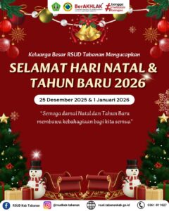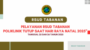 Sehubungan dengan Libur Hari Natal, kami menginformasikan kepada pengunjung RSUD Tabanan bahwa Pelayanan Poliklinik RSUD Tabanan pada Kamis, 25 Desember...