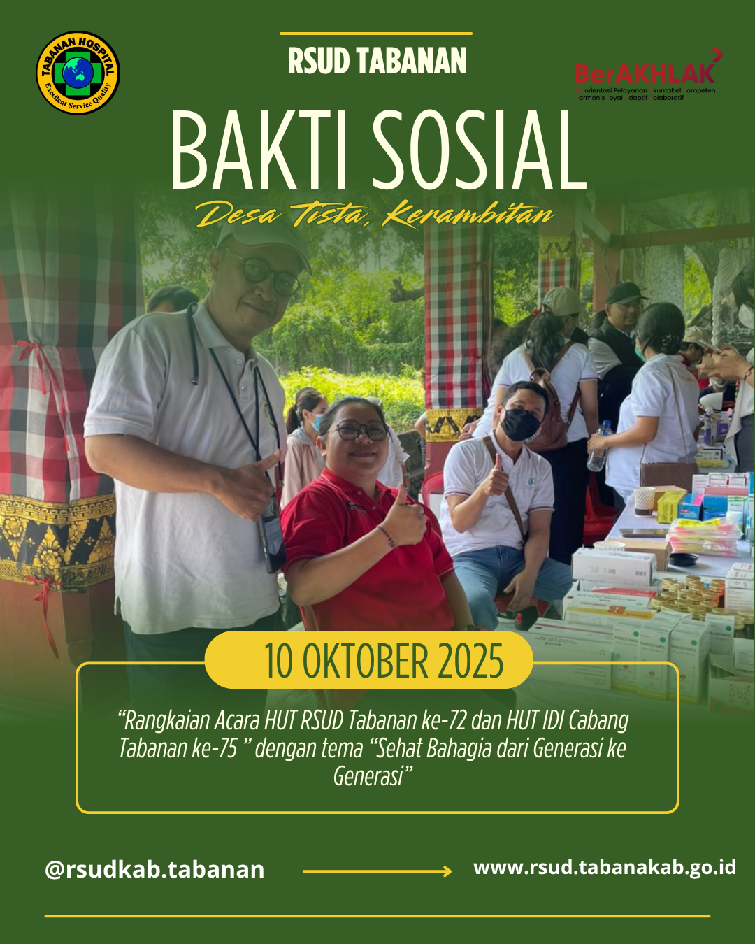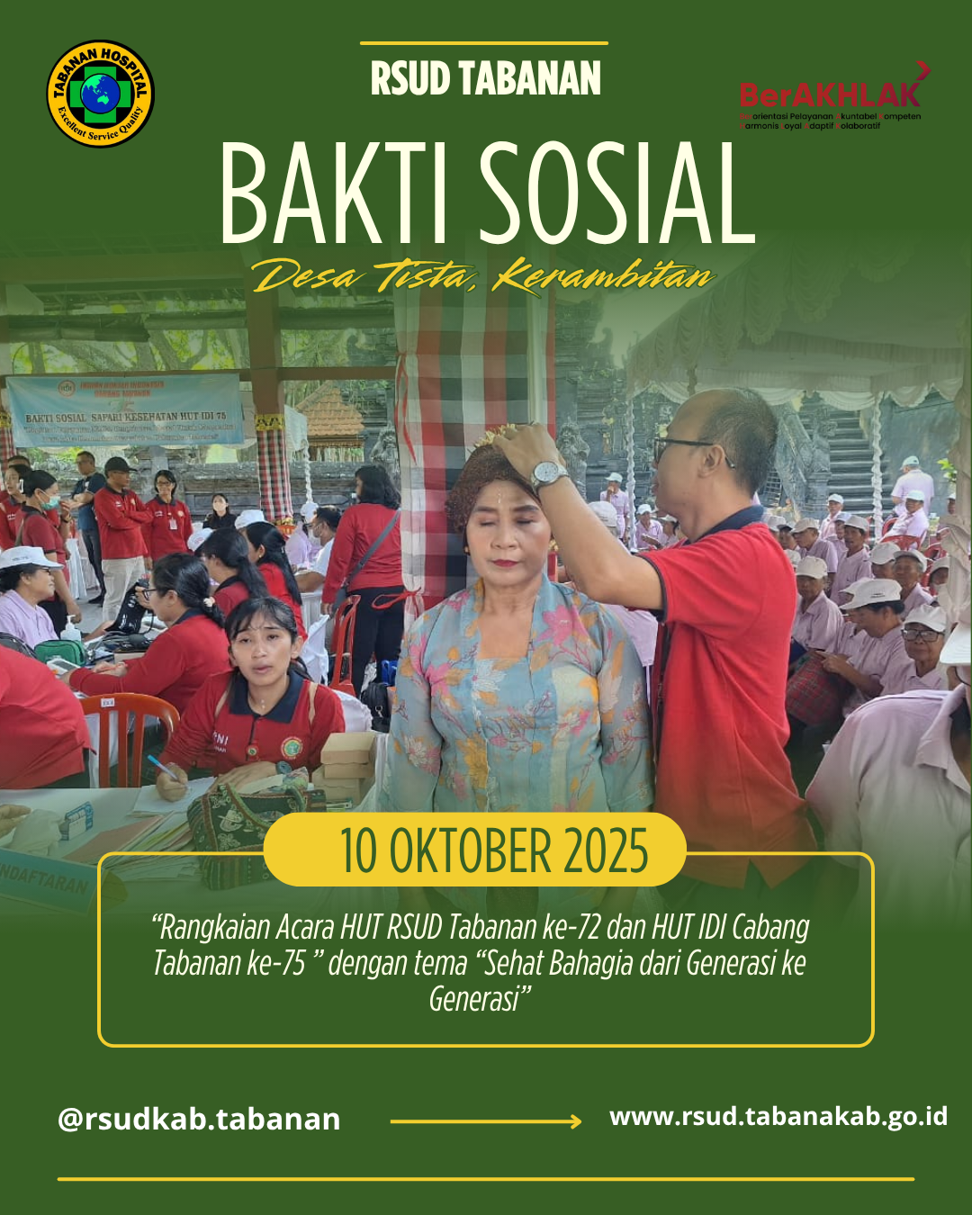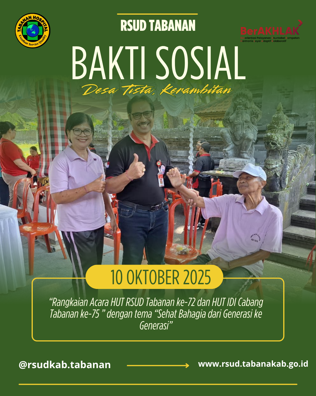BAKTI SOSIAL MENYEMARAKKAN RANGKAIAN HUT RSUD TABANAN KE 72 DAN HUT IDI CABANG TABANAN KE 75 DENGAN TEMA “Sehat Bahagia dari Generasi Ke Generasi”