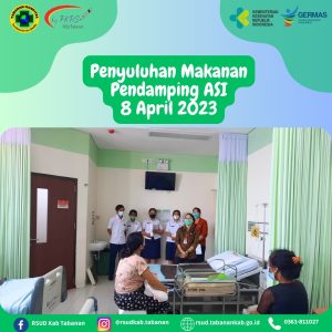 Semeton RSUD Tabanan, Sabtu 8 April 2023 PKRS melaksanakan kegiatan penyuluhan Pentingnya Makanan Pendamping ASI pada Anak di Ruang Rawat...