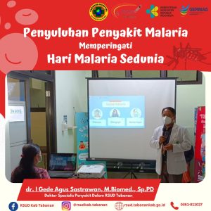Semeton RSUD Tabanan, Kamis, 27 April 2023 PKRS melaksanakan kegiatan penyuluhan Penyakit Malaria dalam rangka memperingati Hari Malaria Sedunia di...