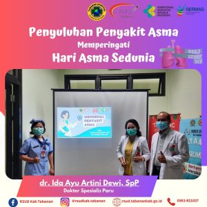 PKRS RSUD Tabanan melaksanakan Penyuluhan memperingati Hari Asma Sedunia pada hari Kamis, 11 Mei 2023 dengan pembicara dr. Ida Ayu...