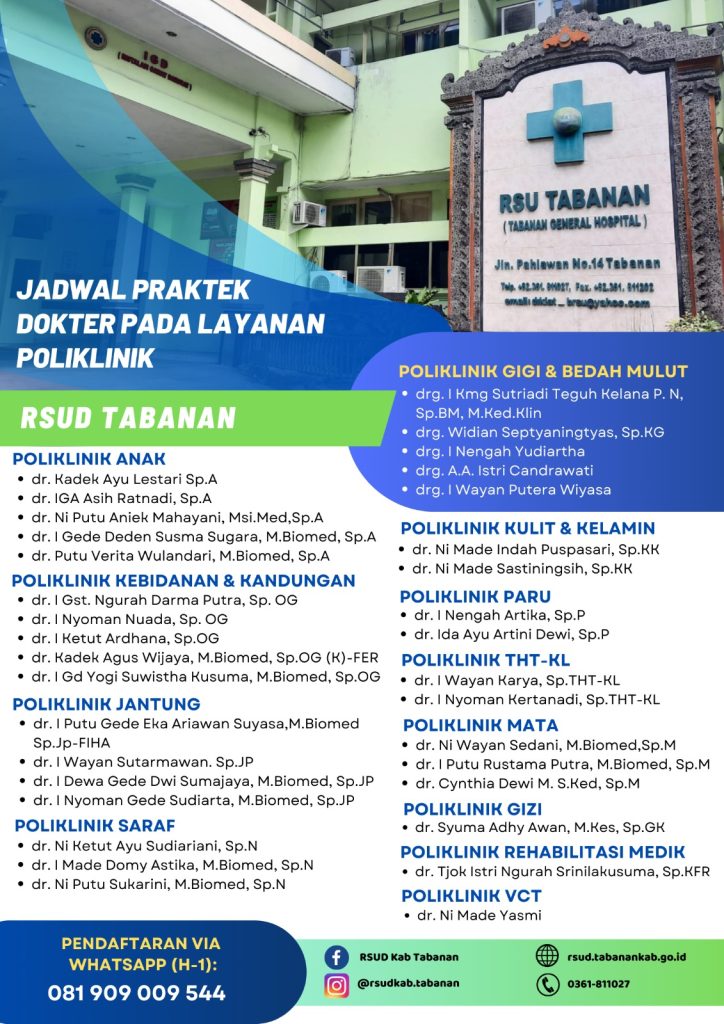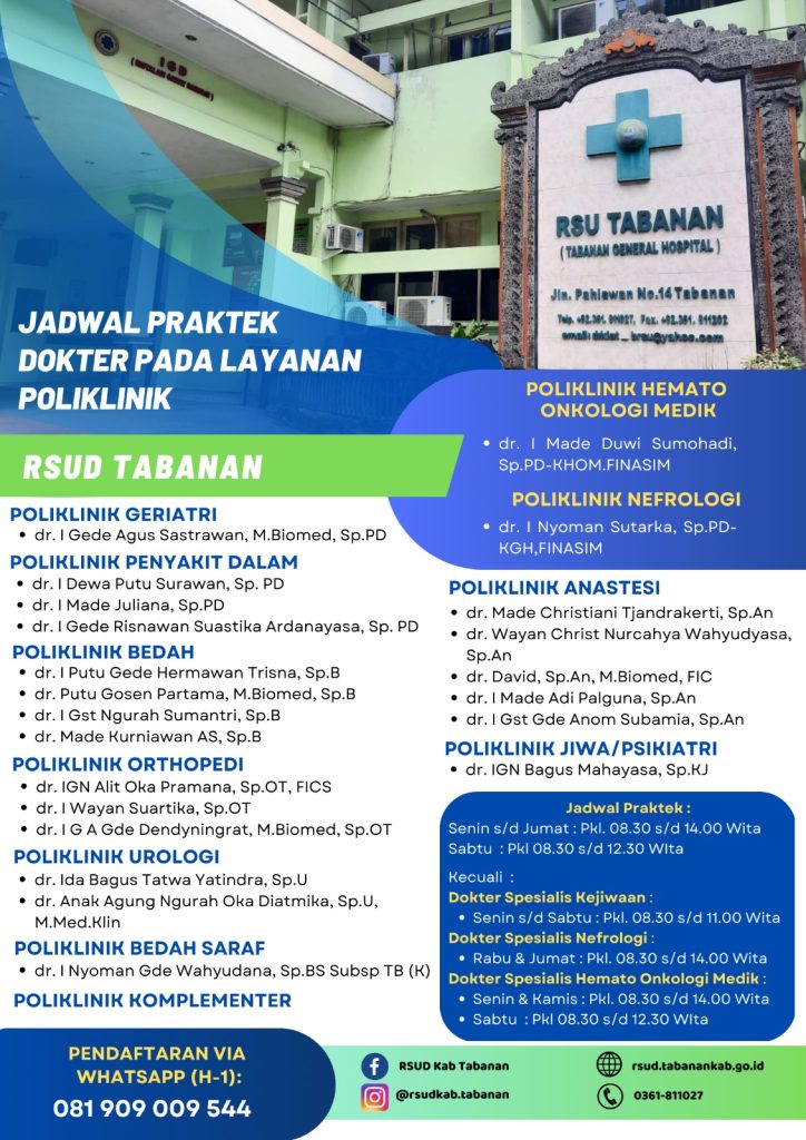 Jam Pelayanan Dokter Spesialis Di Poliklinik RSUD Tabanan
