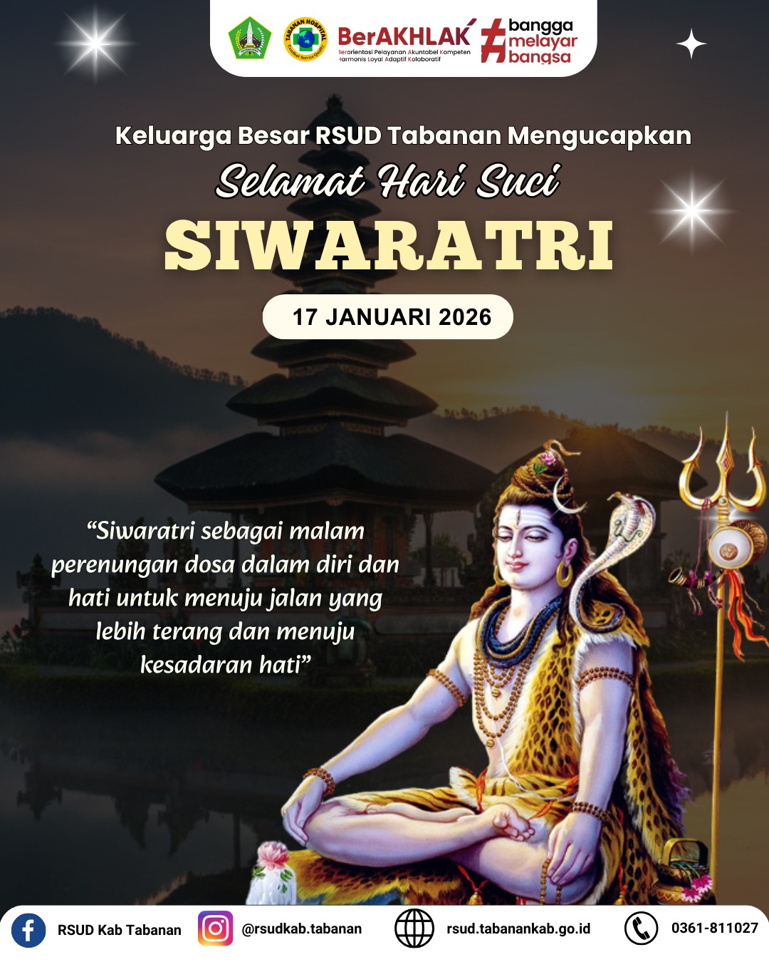 Keluarga Besar RSUD Tabanan mengucapkan RAHAJENG RAHINA SUCI SIWARATRI bagi umat sedharma.