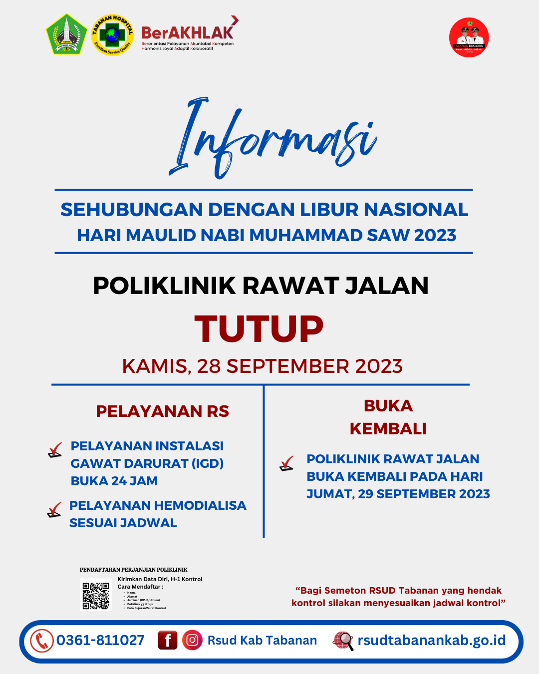 HARI ISRA MI’RAJ NABI MUHAMMAD SAW 1447 H dan HARI SUCI SIWARATRI POLIKLINIK RSUD TABANAN DI TUTUP