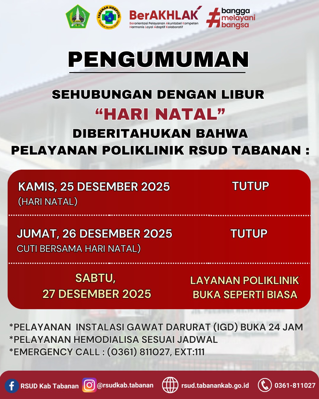 PELAYANAN RSUD TABANAN SAAT HARI RAYA NATAL 2025