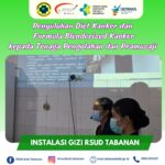 Semeton RSUD Tabanan, Jumat 27 September 2024 PKRS RSUD Tabanan dan Tim Instalasi Gizi RSUD Tabanan mengadakan kegiatan Penyuluhan Diet Kanker dan Formula Blenderized Kanker kepada Tenaga Pengolahan dan Pramusaji Instalasi Gizi RSUD Tabanan. Adapun narasumber dalam kegiatan ini yaitu Gusti Putu Yadnya, S.ST dan Mahasiswa Jurusan Gizi Poltekkes Kemenkes Denpasar. Pemberian diet pada pasien kanker bertujuan untuk mendukung terapi pengobatan dan meningkatkan peluang kesembuhan. Dalam pengolahan makanan bagi pasien kanker harus diperhatikan kondisi fisik pasien dan jenis pengobatan yang dijalani pasien. Teknik pengolahan makanan untuk penderita kanker yang tepat yaitu cuci bersih bahan makanan, pisahkan makanan mentah dari yang siap saji, masak hingga matang untuk membunuh bakteri dan hindari mengonsumsi makanan mentah. Disarankan untuk memasak dengan metode rendah lemak seperti merebus, mengukus atau tumis dengan sedikit minyak sehat. Sajikan makan lembut seperti bubur, sup atau puree untuk memudahkan proses menelan. Hindari penggunanan bahan pengawet dan makanan olahan tinggi garam, gula, lemak, dan disarankan menggunakan bumbu alami. Selain itu pastikan asupan protein berkualitas, karbohidrat kompleks, lemak sehat dan serat dari sayuran serta buah-buahan. Selain itu disampaikan pula oleh narasumber terkait formula blenderized kanker, yaitu makanan cair lengkap yang termasuk dalam formula rumah sakit, dirancang untuk memenuhi kebutuhan gizi pasien terutama penderita kanker. Pemberian formula ini bertujuan untuk membantu memenuhi kebutuhan gizi untuk pasien yang mengalami kesulitan mengunyah, menelan, mencerna makanan padat atau yang memiliki kesadaran menurun serta bertujuan untuk meringankan beban kerja sistem saluran pencernaan.