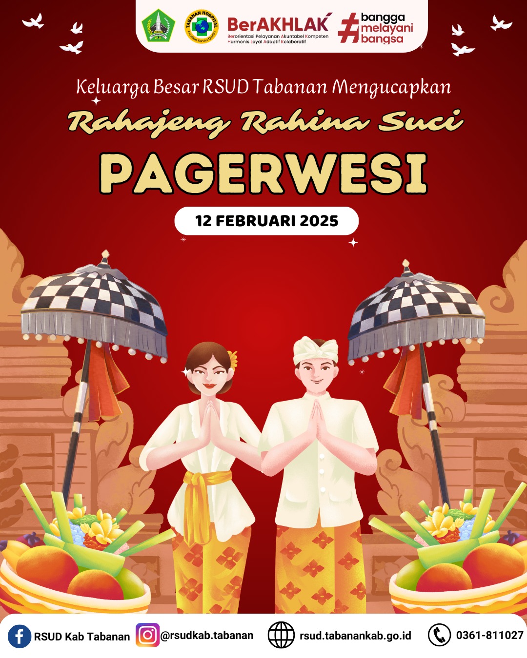 Keluarga Besar RSUD Tabanan mengucapkan RAHAJENG RAHINA PAGERWESI bagi umat sedharma.