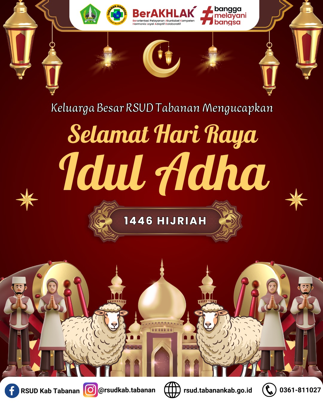 Keluarga Besar RSUD Tabanan mengucapkan Selamat Hari Raya Idul Adha 1446 Hijriah.